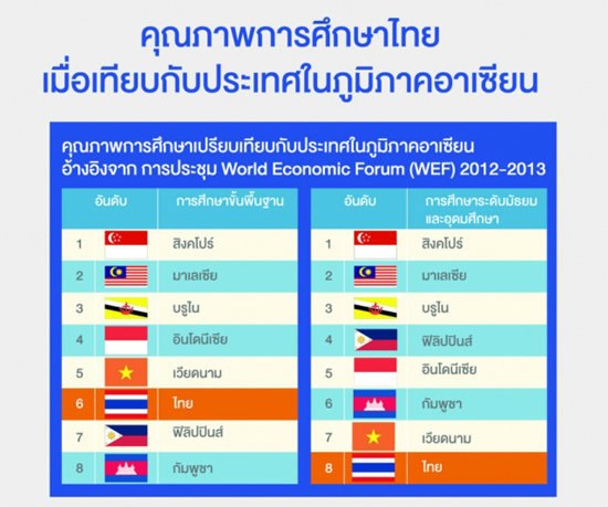 ลองดูภาพวิวัฒนาการของการใช้ความคิด ที่เริ่มจากความจำ (Remember) แบบเด็ก ๆ ไปสู่การสร้างคุณค่าเพิ่ม (Value Creation) ซึ่งเป็นการพัฒนาการเรียนรู้ขั้นสูงสุดที่สามารถสร้างคุณค่าเพิ่มจากนวัตกรรมใหม่ ๆ ที่เขา Create ขึ้นได้ ในช่วงต่อไปนี้ ผมกำลังจะก้าวเข้าไปพูดถึงการพัฒนาการศึกษาไทย ซึ่งทุกท่านคงพอจะได้ยินได้ฟังมาแล้วนะครับว่า ระดับการศึกษาของไทยอยู่ในระดับเกือบจะต่ำที่สุดของเอเซียก็เพราะ แนวการเรียนการสอน ยังคงอยู่ในระดับพื้นฐานเบื้องต้นอยู่มาก นั่นคือ การเรียนแบบจดจำ แต่ไม่ได้เข้าใจ (Understand) อย่างแท้จริงถึงเรื่องราวที่ได้เรียนหรือได้ศึกษามา ดังนั้น นักศึกษาไทยจำนวนไม่น้อย จึงไม่สามารถก้าวไปสู่การวิเคราะห์ การประเมินผล การสร้างคุณค่าเพิ่ม ที่เป็นรูปธรรมได้อย่างที่นานานอารยะประเทศประสบความสำเร็จในการพัฒนาคนของเขา ให้อยู่ในระดับเป้าหมายสูงสุดคือการสร้างคุณค่าเพิ่ม (Value Creation)