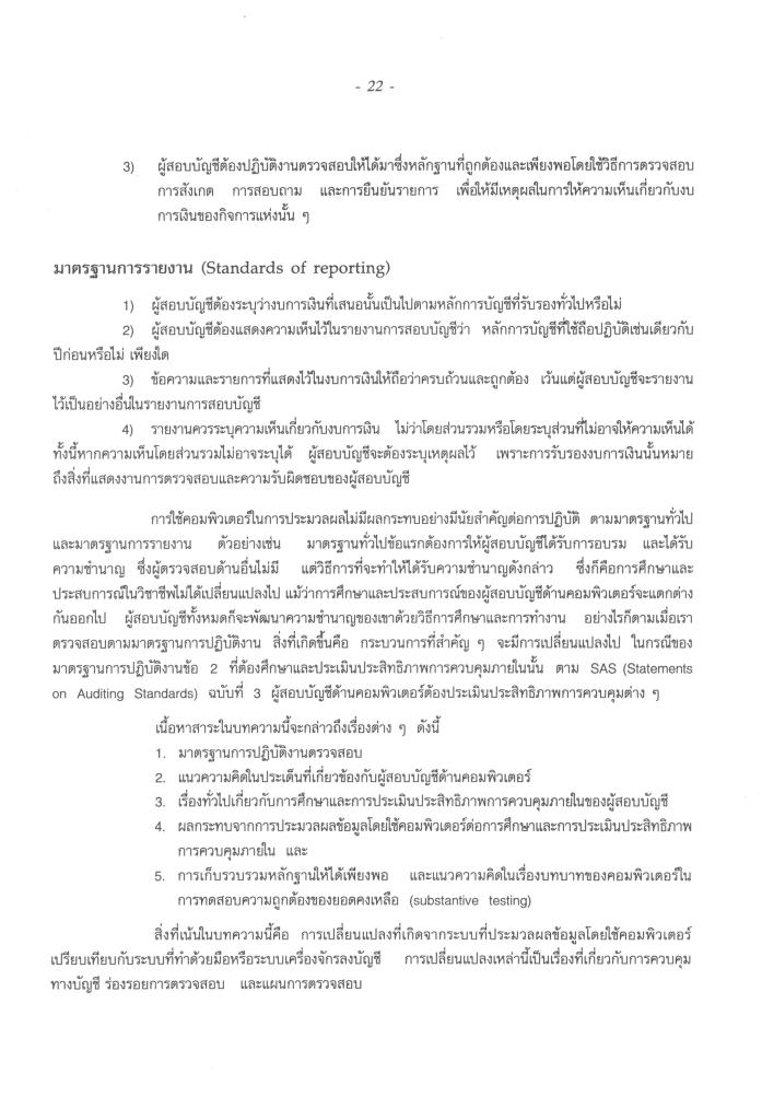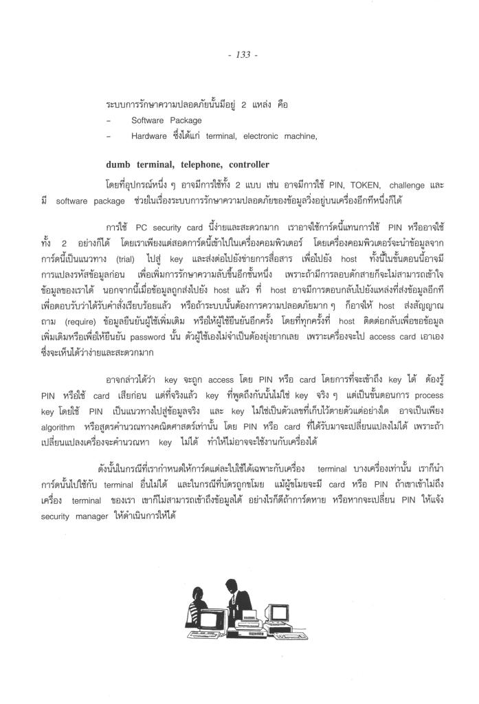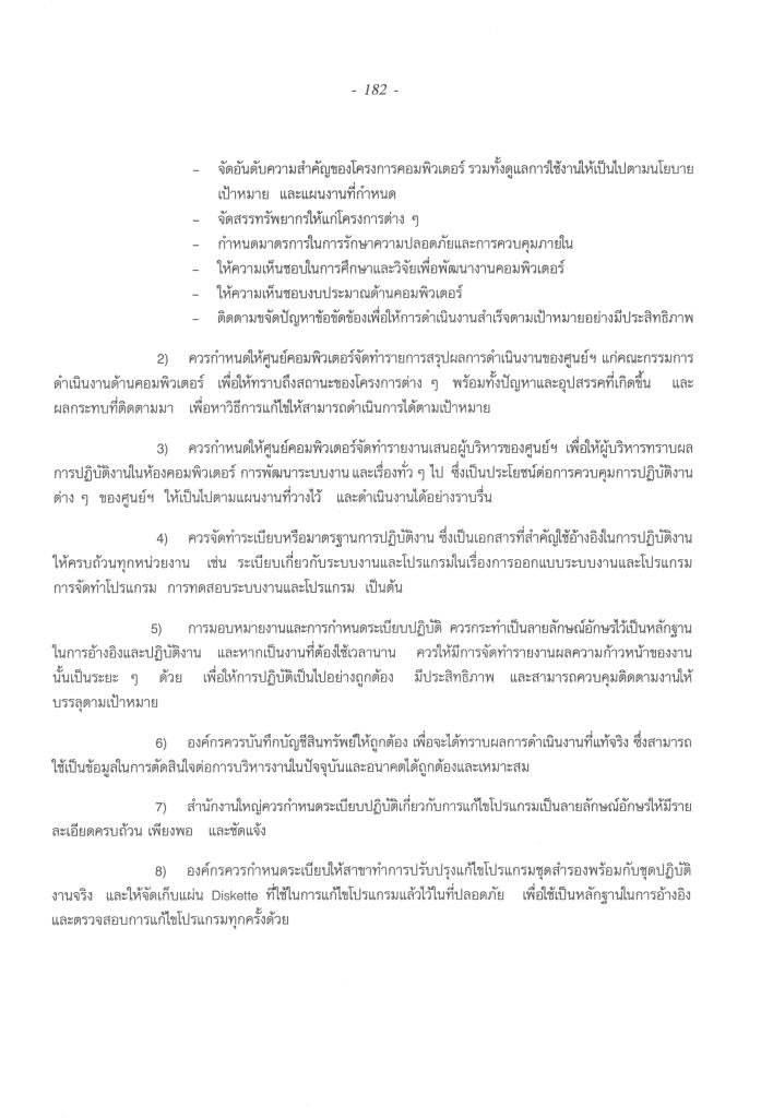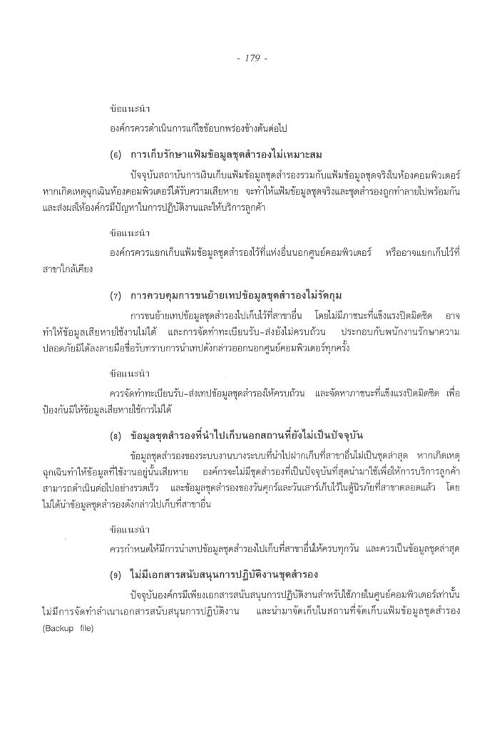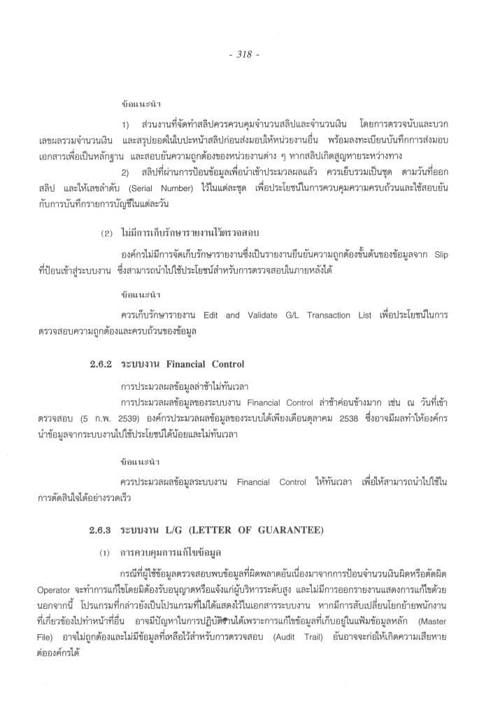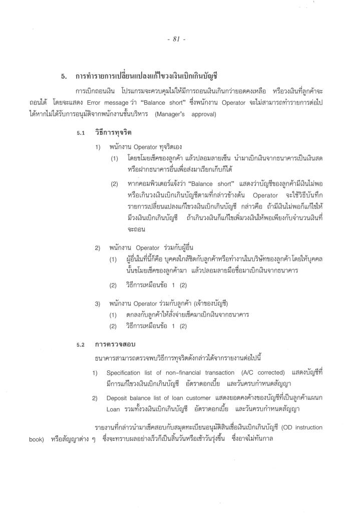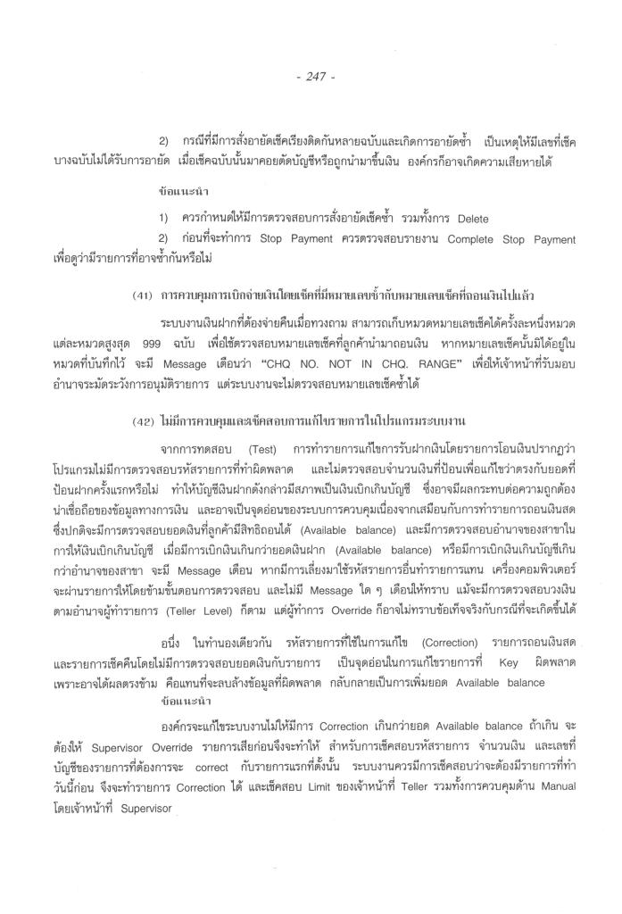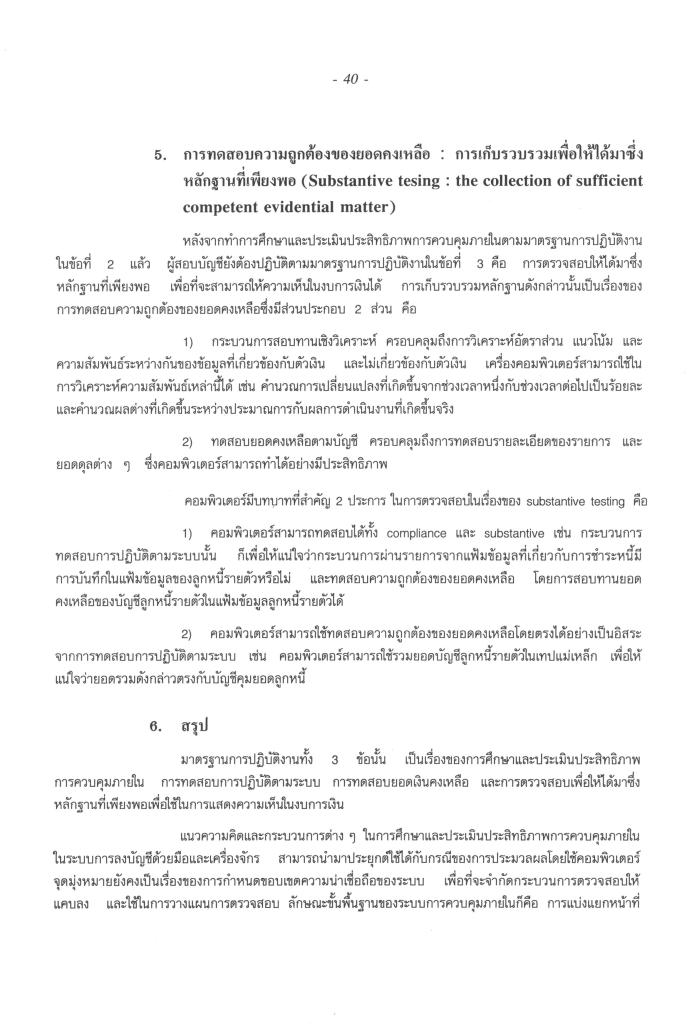 เอกสารชุดนี้ จึงจัดทําขึ้นเพื่อแจกจ่ายให้ผู้ตรวจสอบ ส่วนกํากับสถาบันการเงินของธนาคารแห่งประเทศไทยเป็นหลัก และสถาบันการเงินต่าง ๆ ในภาคตะวันออกเฉียงเหนือ ทั้งนี้เป็นไปตามแผนงานหนึ่งในจํานวน 19 แผนงาน ของธนาคารแห่งประเทศไทย สาขาภาคตะวันออกเฉียงเหนือ - การที่ผมได้รับมอบหมายจากธนาคารแห่งประเทศไทยให้รับผิดชอบและมีหน้าที่ในการศึกษา ค้นคว้า พัฒนางานตรวจสอบด้านคอมพิวเตอร์ (IT หรือ IS Audit) ในช่วงเวลาที่ผ่านมานั้น ผมได้เสนอและแนะนําให้ธนาคาร พาณิชย์ รวมทั้งผู้ตรวจสอบภายนอกของธนาคารพาณิชย์ให้ปฏิบัติในหลายเรื่อง ตามที่ปรากฏในบทที่ว่าด้วยเรื่อง “บทบาทของธนาคารแห่งประเทศไทยกับคอมพิวเตอร์” และ “Role of the bank of Thailand in Banking Computerization” นั้น ทําให้ผมต้องวางมือจากการเป็นผู้สอบบัญชีรับอนุญาตในทุกองค์กร ตั้งแต่ปี พ.ศ. 2524 จนกระทั่งปัจจุบัน (มกราคม 2540) และเข้าใจว่าจะวางมือจากการดําเนินการเป็นผู้สอบบัญชีรับอนุญาตจนกว่าจะออกจากธนาคารแห่งประเทศไทย ทั้งนี้เพราะการออกกฎเกณฑ์บางอย่างกระทบต่อบทบาท ความรู้ ความสามารถ และการเป็นผู้มีคุณสมบัติในการเป็นผู้สอบบัญชีของธนาคารและสถาบันการเงินนั่นเอง ดังนั้นเพื่อความโปร่งใส……ในเรื่องนี้ ผมจึงต้องทําตัวเป็นกลางดังกล่าว