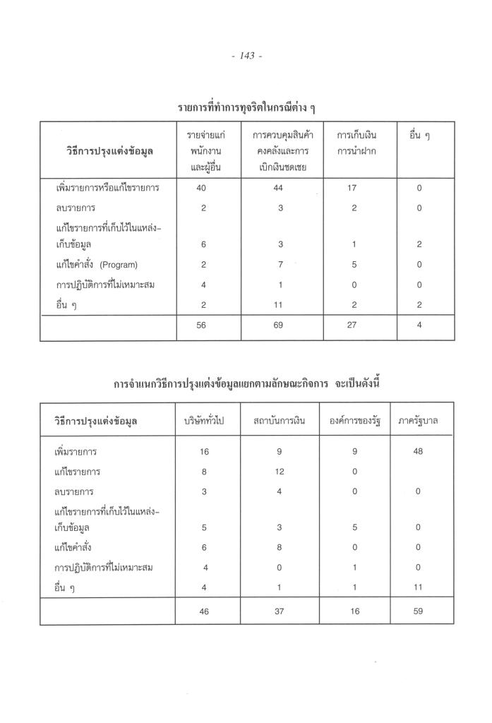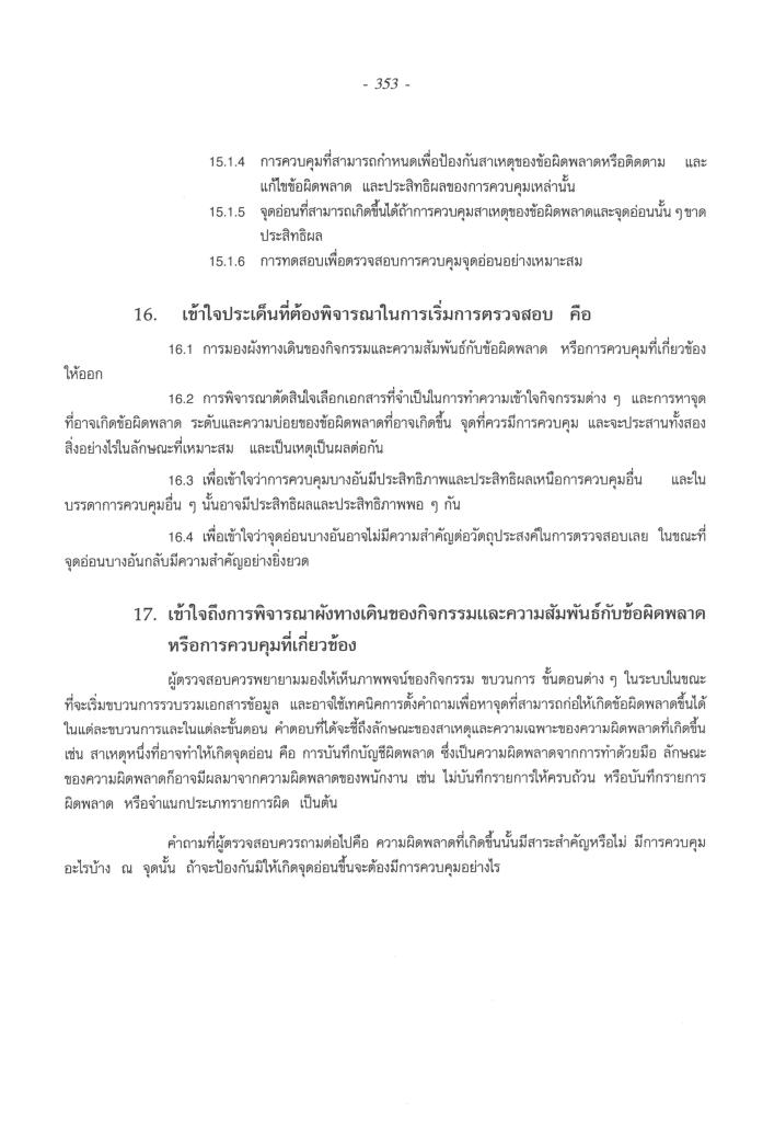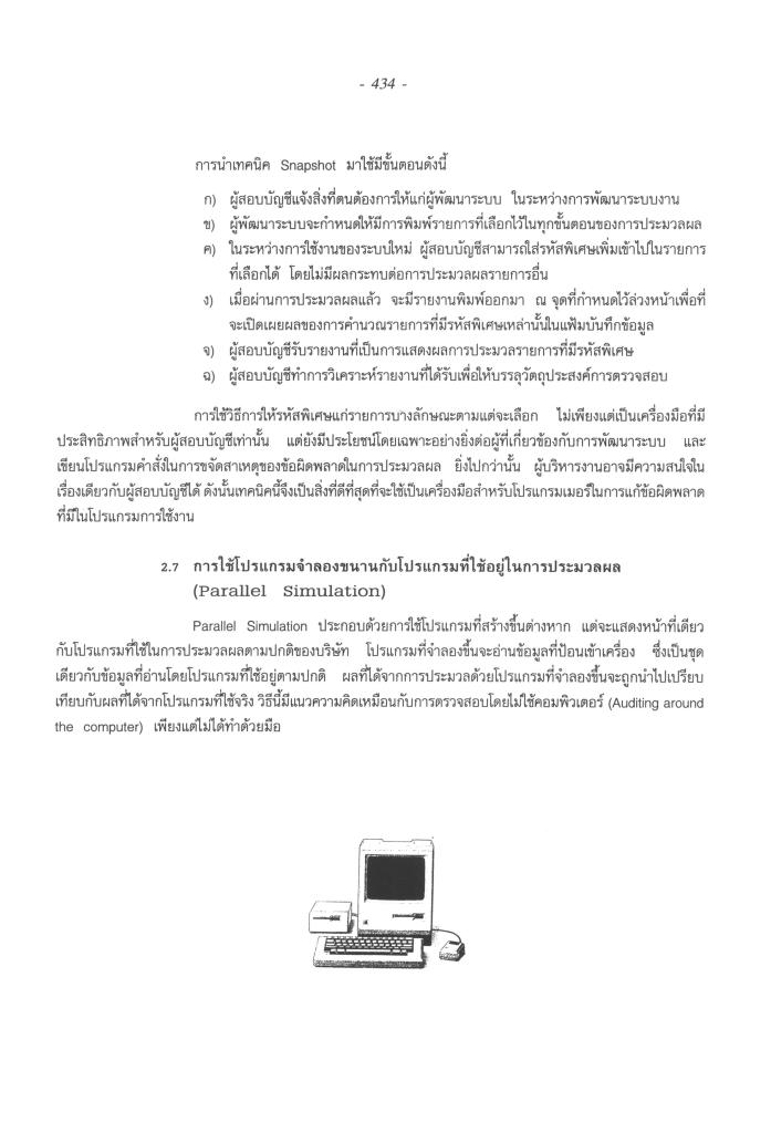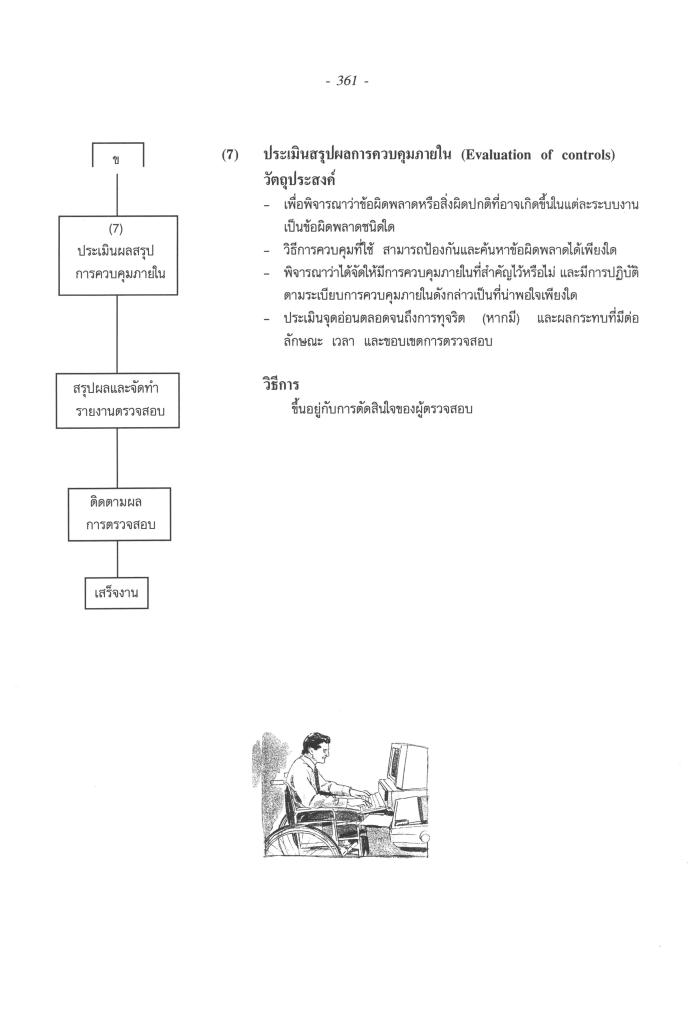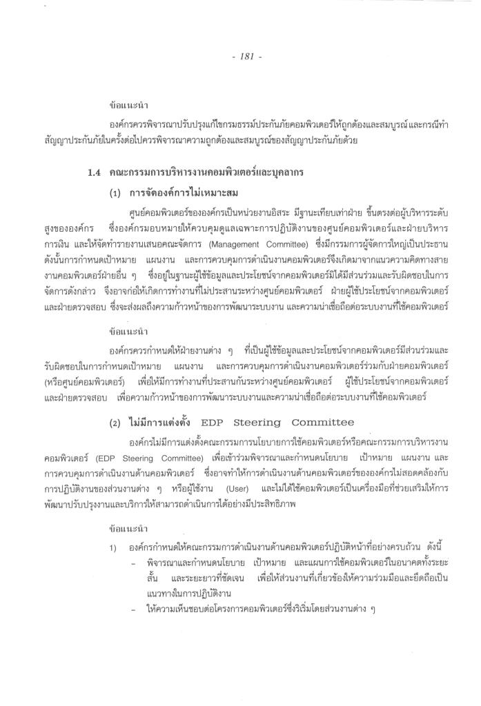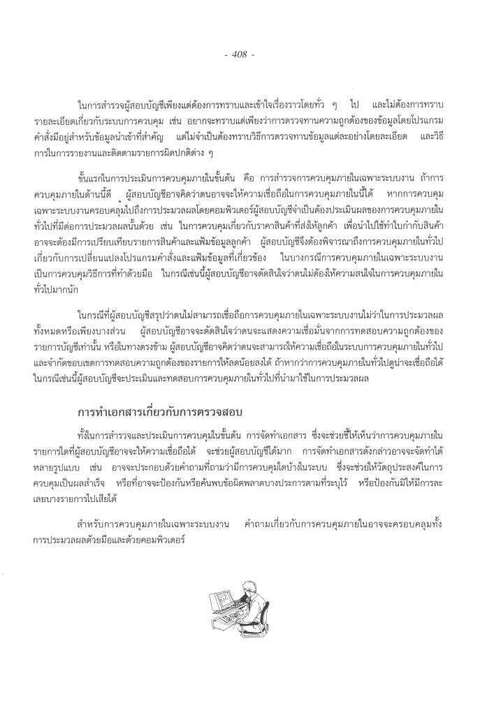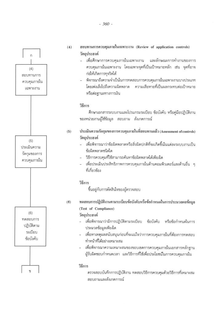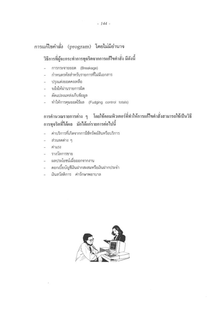 ความคิดและการกระทําดังกล่าวได้ - หากท่านผู้อ่านใคร่จะทบทวนแนวคิด ตลอดจนวิธีการตรวจสอบองค์กรที่ใช้คอมพิวเตอร์ ซึ่งในความหมายนี้คลุมไปหมดทั้งเรื่อง Financial Audit และ Computer Audit หรือ IS Audit ซึ่งการตรวจสอบทั้ง 2 เรื่อง มีความสัมพันธ์กันอย่างใกล้ชิด เพราะการตรวจสอบ Financial Audit ก็คงต้องพิจารณา Computer Audit ด้วยในฐานะที่องค์กรยุคใหม่ได้นําคอมพิวเตอร์มาใช้ในการปฏิบัติงาน และการควบคุมภายในแล้วทั้งสิ้น ท่านอาจดูข้อสรุปในเล่มนี้ในบทที่เกี่ยวข้องกับการตรวจสอบการทุจริตได้