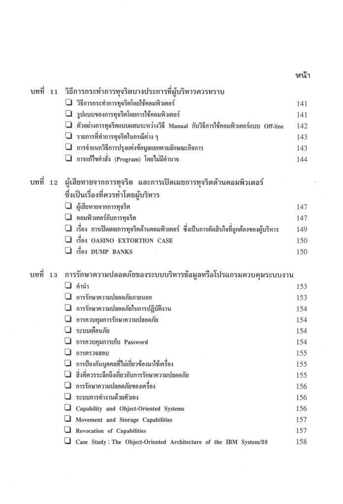 - หนังสือชุด “การดําเนินงานและการตรวจสอบสถาบันการเงินด้านคอมพิวเตอร์” ซึ่งเดิมผมเคยประมาณไว้ว่าจะมี 3 เล่มด้วยกัน แต่เมื่อได้รวบรวมและเขียนเพิ่มเติมขึ้นมาใหม่ ก็พบว่ามีเรื่องที่เพิ่มเติมได้อีกหลายเรื่อง รวมทั้งการขยายและอธิบายความที่เคยเขียนในอดีตใหม่ ทําให้หนังสือชุดนี้จะมีอย่างน้อย 4 เล่ม โดยเฉพาะหนังสือเล่ม 3 นี้ มีเรื่องที่ได้เขียนเพิ่มเติมอีกจํานวนมาก เพราะมีความสําคัญที่น่าจะศึกษาโดยเฉพาะตัวอย่าง จุดอ่อนที่อาจจะเกิดการทุจริต รวมทั้งการทุจริตที่ได้เกิดขึ้นแล้ว