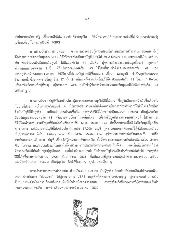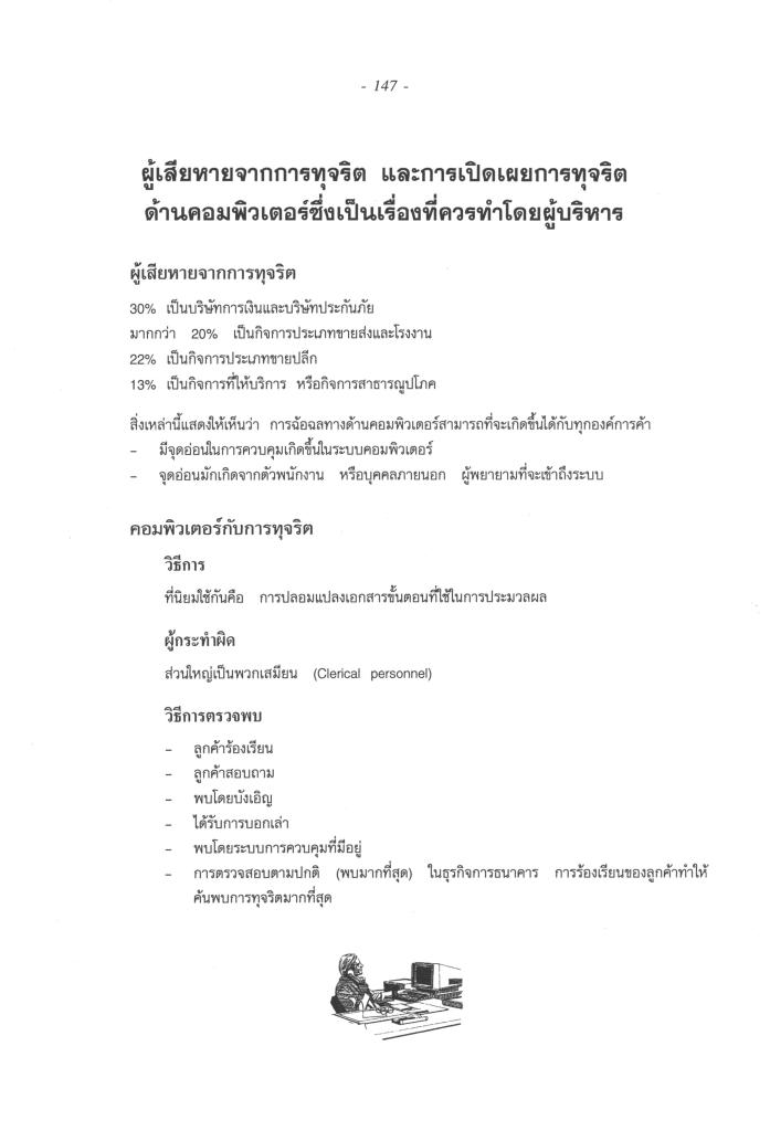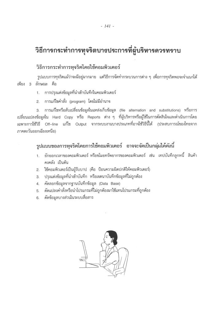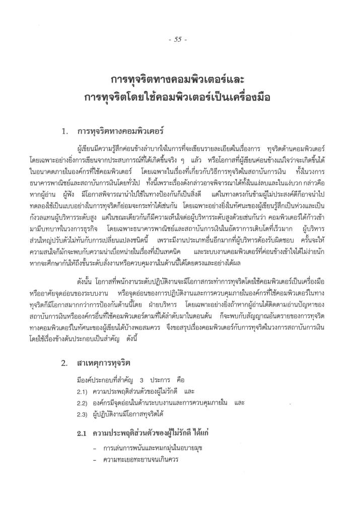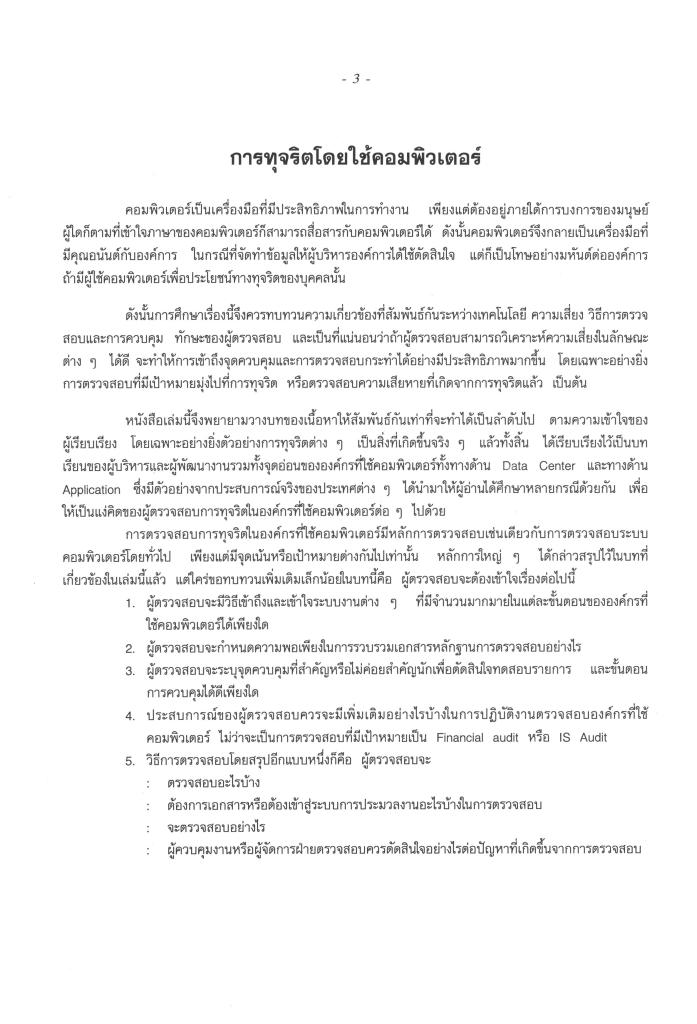 ***** สำหรับท่านที่สนใจ หนังสือ “การดำเนินงาน และการตรวจสอบสถาบันการเงิน ด้านคอมพิวเตอร์ เล่ม 3” ภาคคอมพิวเตอร์กับการทุจริต สามารถติดตาม เนื้อหา/ลิงก์ดาวโหลด ได้ที่ด้านล่างนี้ *****