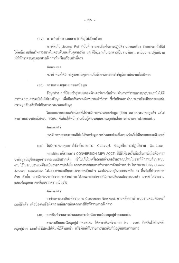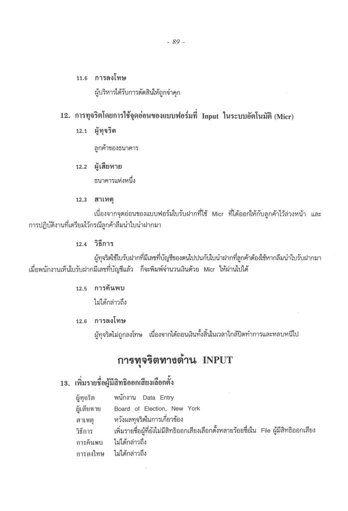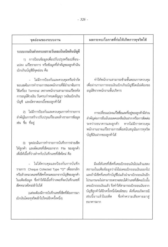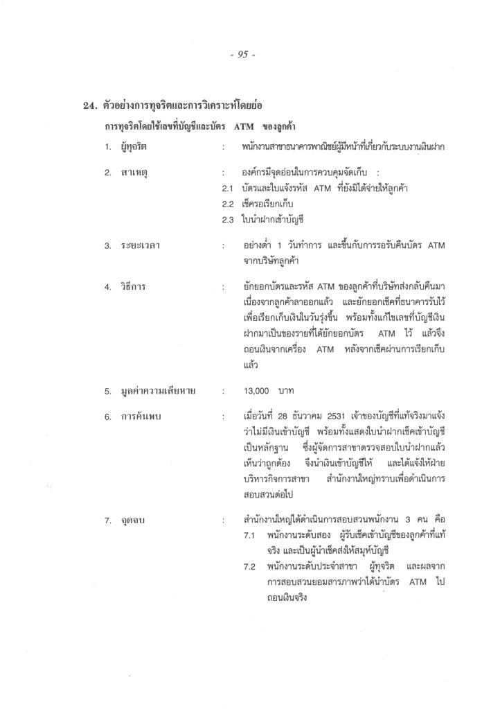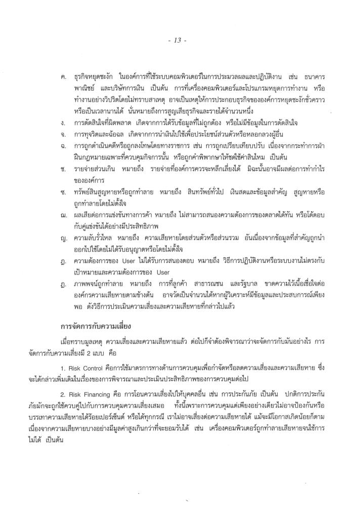 13.2 องค์กรมีจุดอ่อนในระบบงานและการควบคุมภายใน 13.3 ผู้ปฏิบัติงานที่มีความสามารถมีโอกาสที่จะทุจริตได้