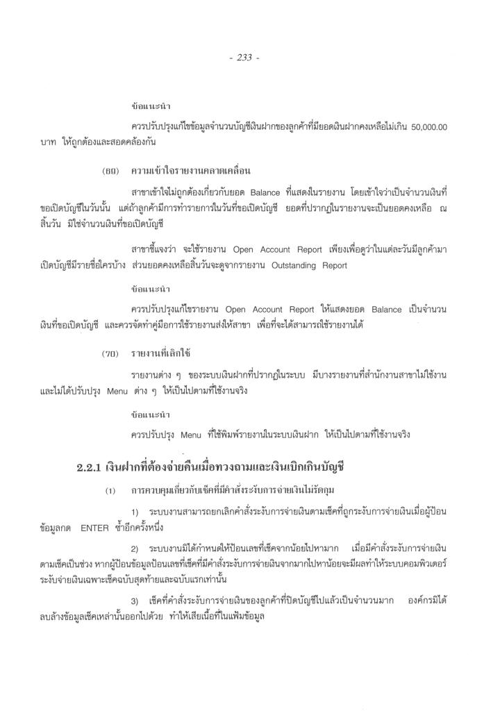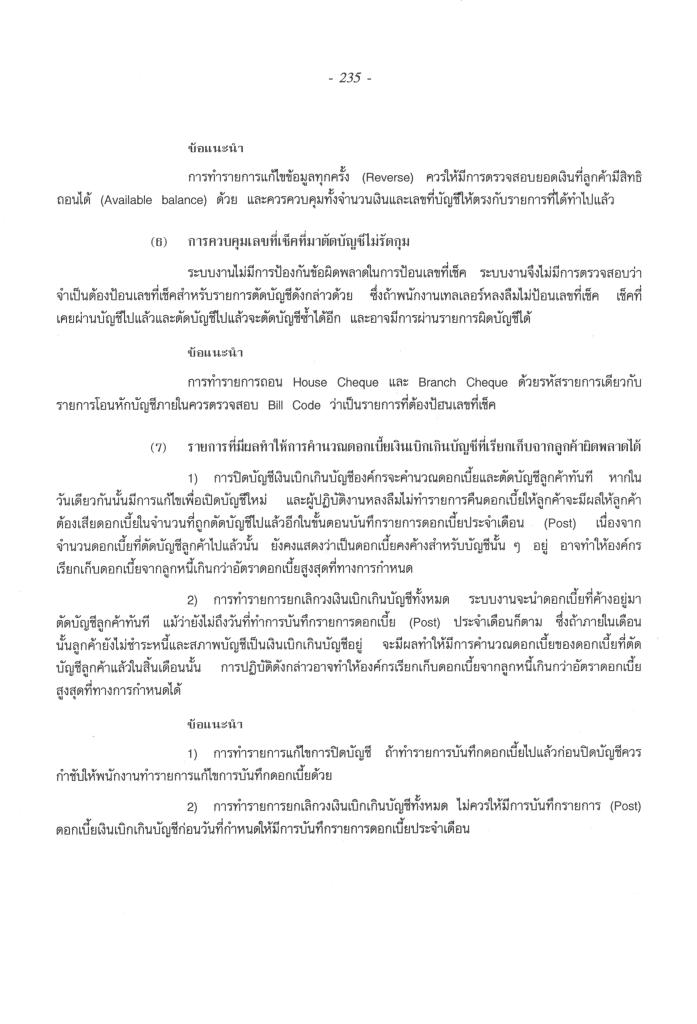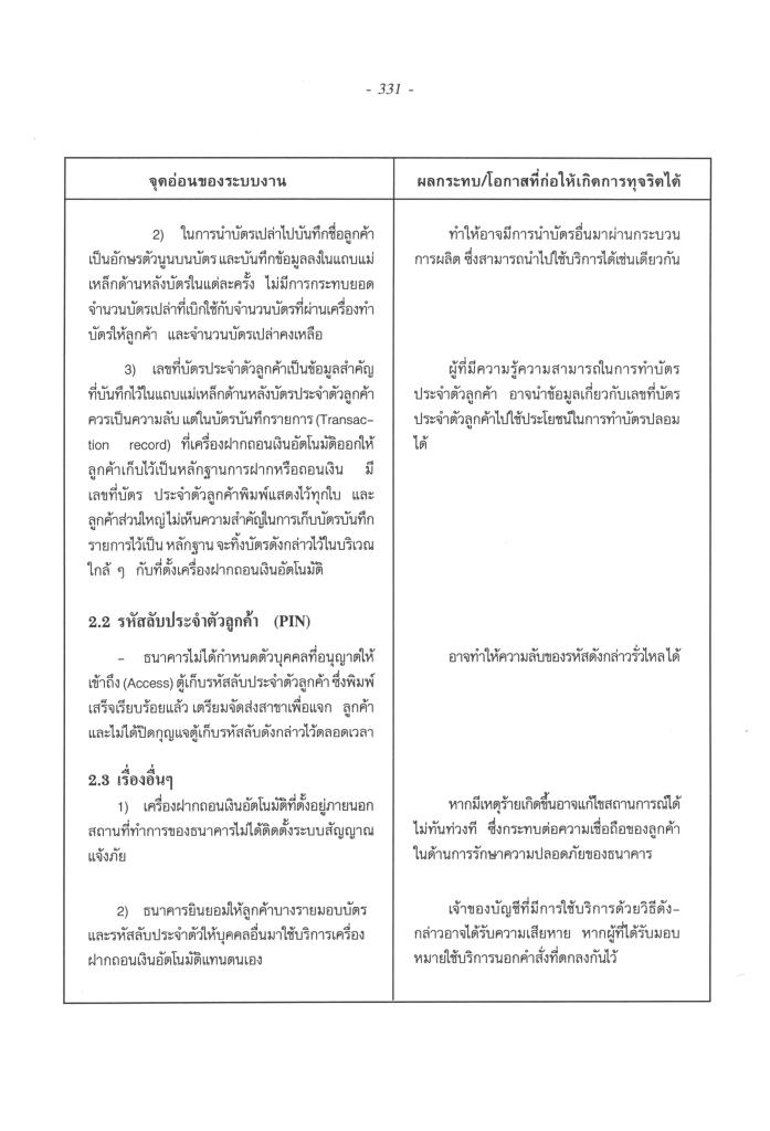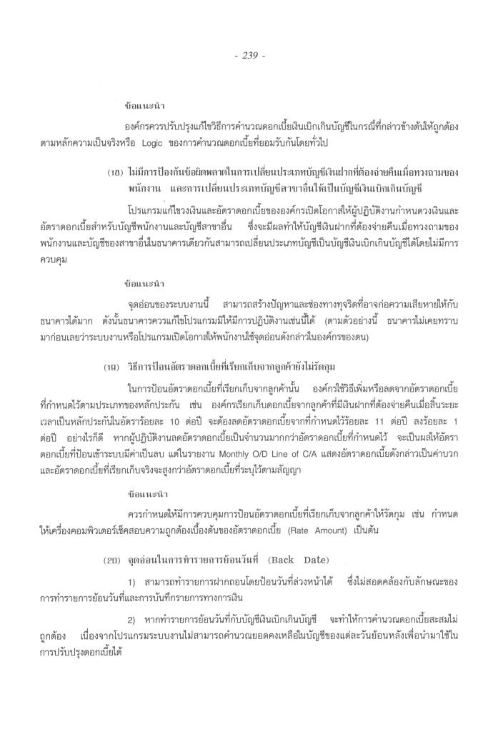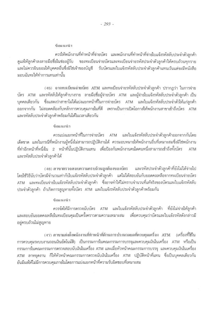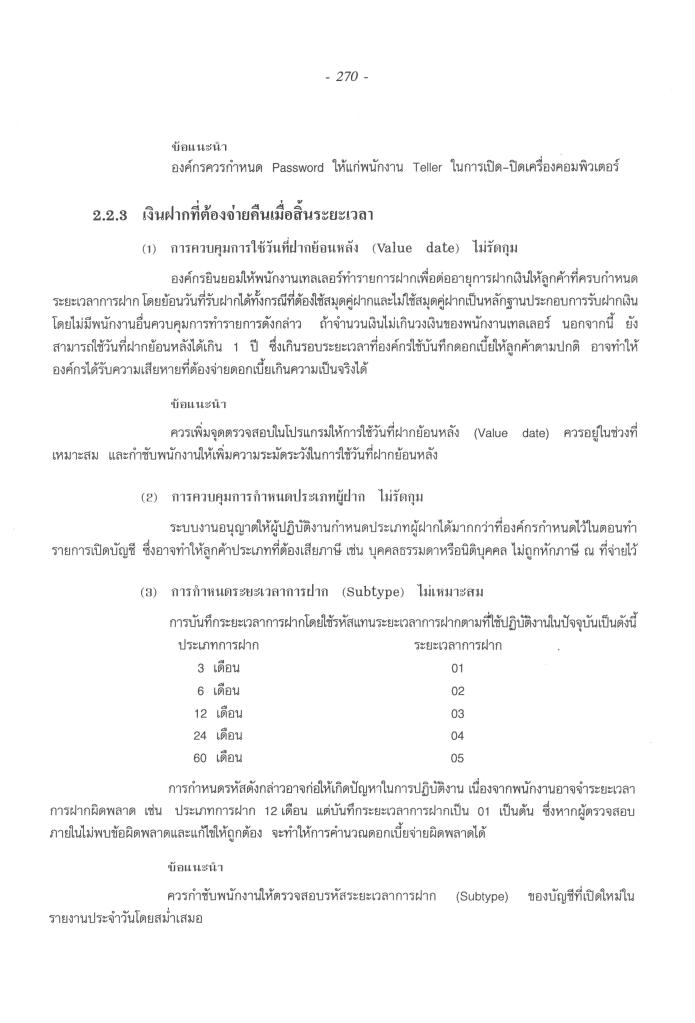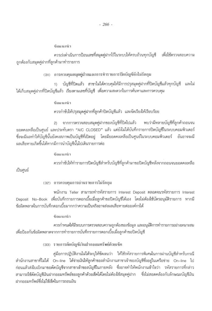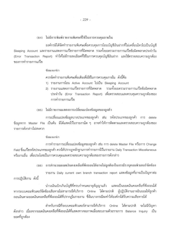 ความเสียหายซึ่งเกิดขึ้นจากระบบงานมีจุดอ่อน อาจก่อให้เกิดความเสียหายให้กับองค์กรอย่างร้ายแรง และคาดไม่ถึง จนถึงขั้นไม่สามารถดําเนินการต่อไปได้ทีเดียว ทั้ง ๆ ที่องค์กรอาจไม่มีปัญหาด้านสภาพคล่อง ซึ่งเป็นเรื่องน่าพิจารณาเป็นอย่างยิ่ง สําหรับผู้บริหารที่ไม่ต้องการให้เกิดปัญหานี้กับองค์กรของตนเอง - ธนาคารแห่งประเทศไทยมีหน้าที่กํากับและดูแลความมั่นคงของสถาบันการเงิน ซึ่งมีความสัมพันธ์กันอย่างใกล้ชิดกับความมั่นคงและเสถียรภาพทางเศรษฐกิจโดยรวมของประเทศ ดังนั้นการป้องกันปัญหาก่อนที่ปัญหาจะเกิดขึ้นกับสถาบันการเงิน จึงเป็นทั้งหน้าที่และวิธีการที่กล่าวได้ว่าเหมาะสม โดยเฉพาะอย่างยิ่งการให้ความรู้คําแนะนํา