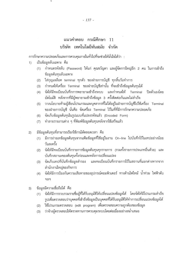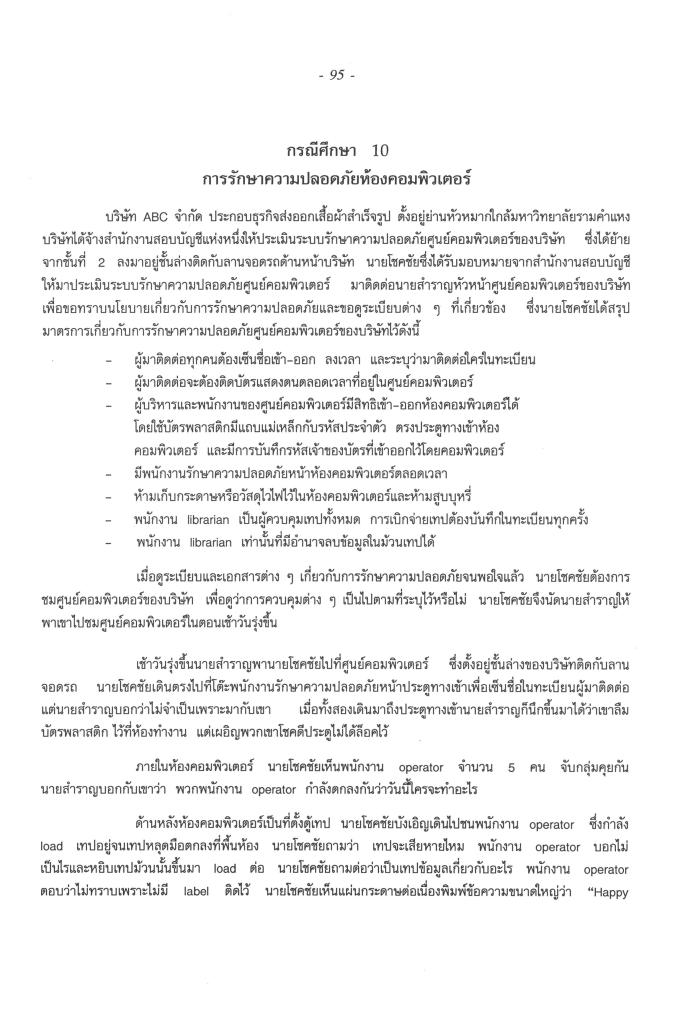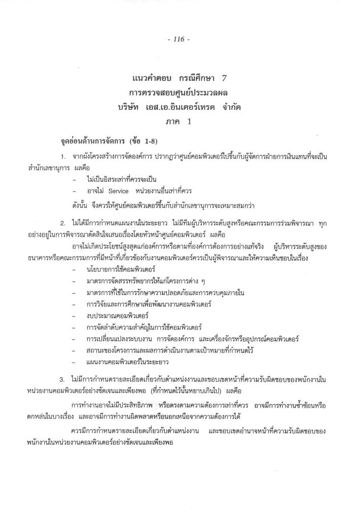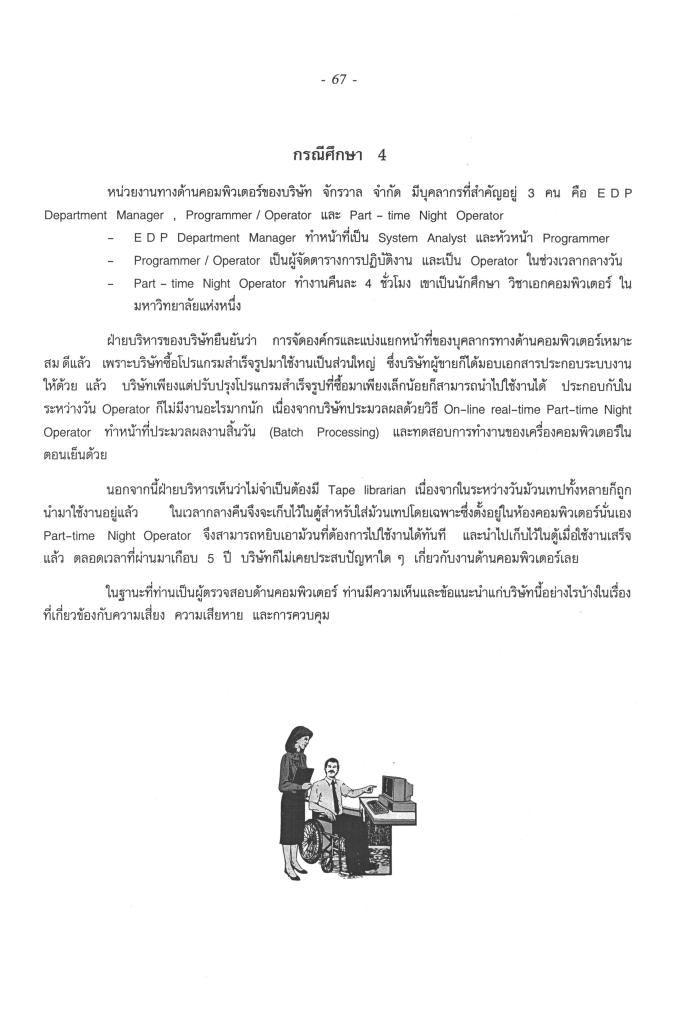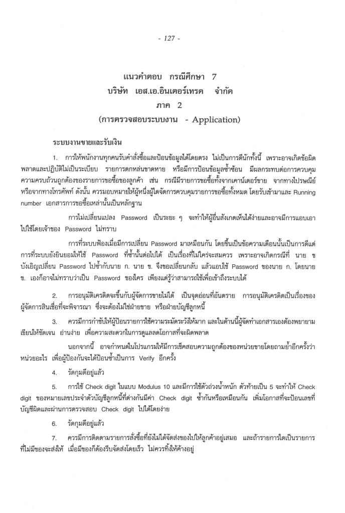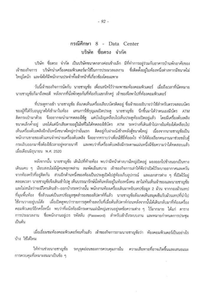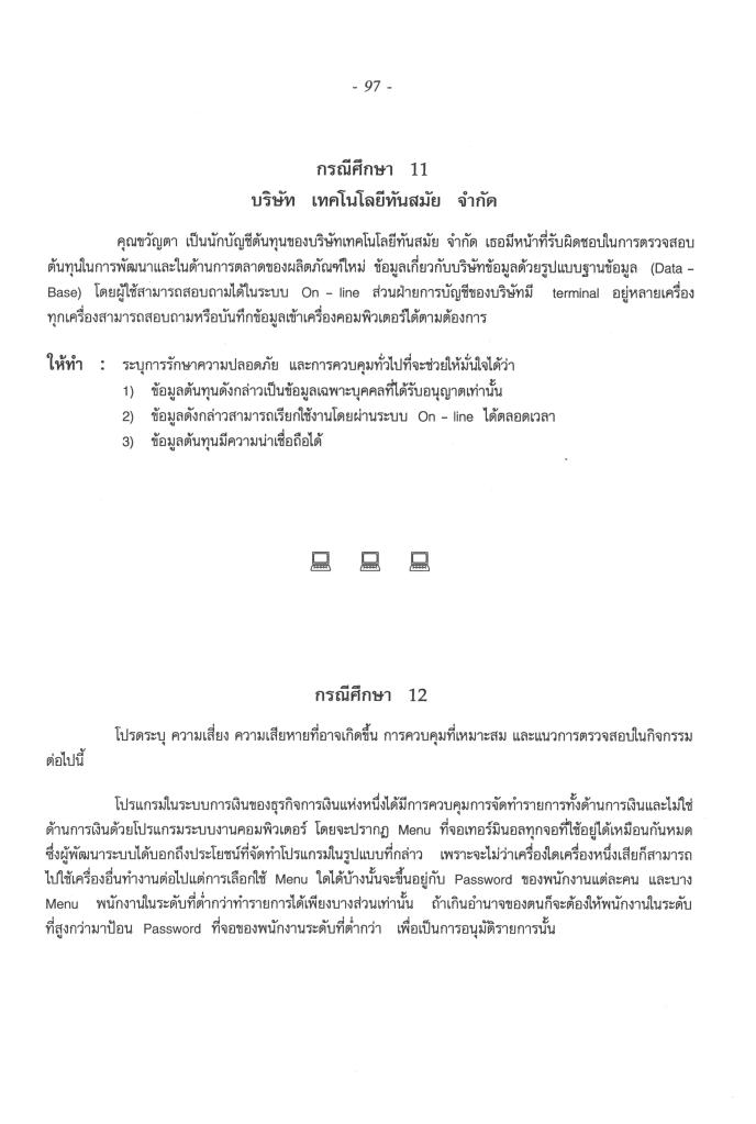 - หนังสือเล่ม 4 นี้ ได้ทํากรณีศึกษาการตรวจสอบ Data Center (General Controls) และการตรวจสอบ “งาน” (Application Controls) เพียงบางกรณี พร้อมแนวคําตอบจากการจัดทํากรณีศึกษาภาคสนามให้ท่านผู้สนใจได้ทบทวนอีกครั้ง โดยเฉพาะอย่างยิ่งผู้ตรวจสอบด้านคอมพิวเตอร์ (IS Auditor) รวมทั้งผู้ตรวจสอบโดยทั่วไป