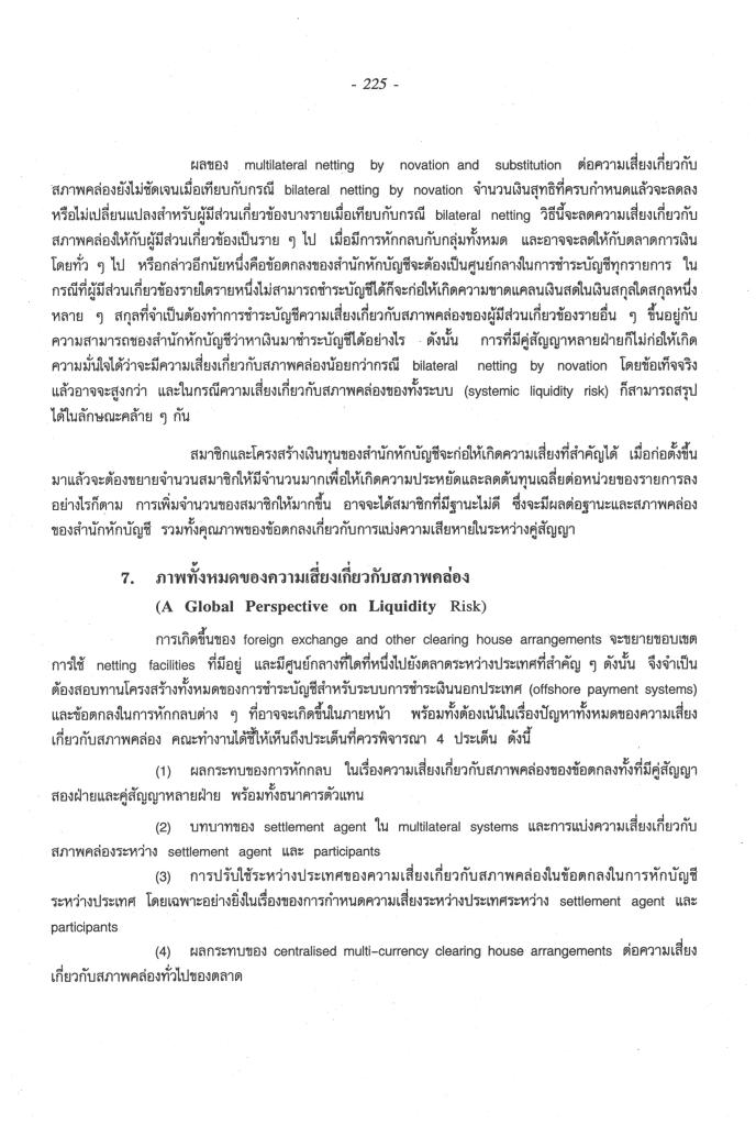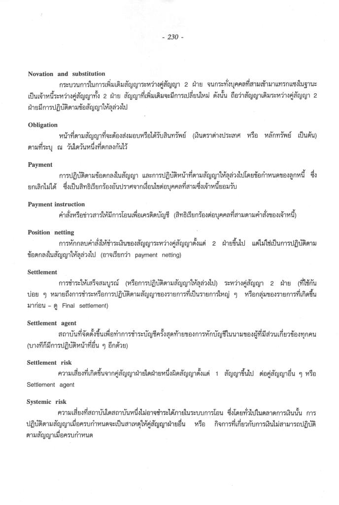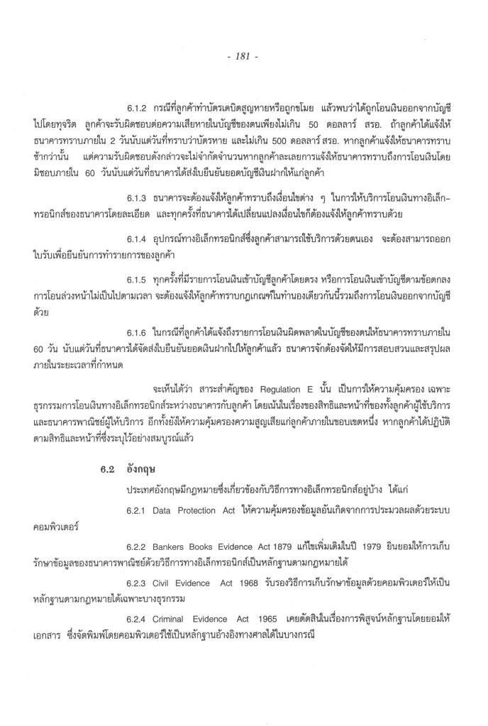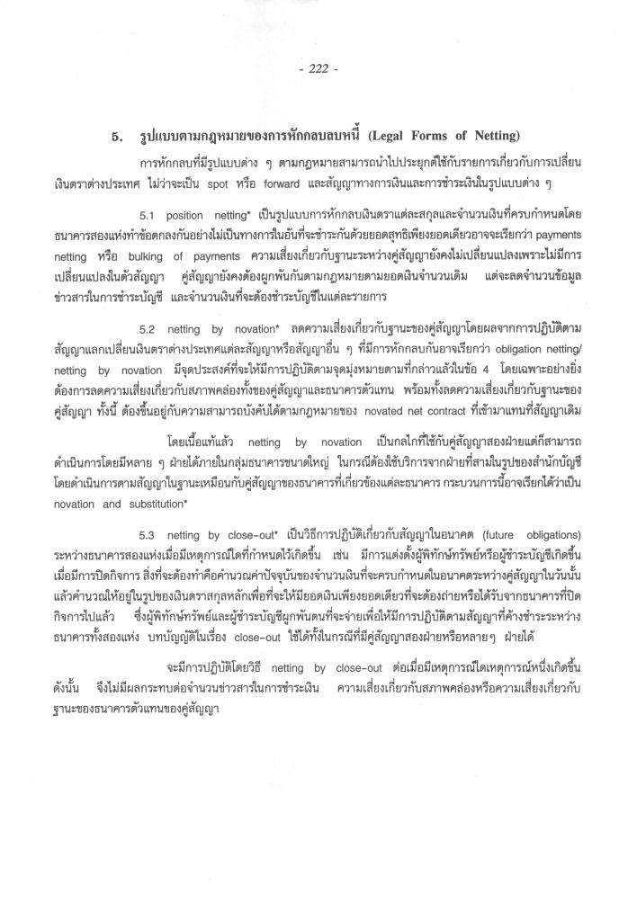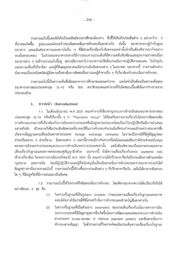 - ในภาคผนวกของเล่มนี้ ได้เรียบเรียงความเห็นเกี่ยวกับการร่างแนวทางกฎหมายการโอนเงินทางอิเล็กทรอนิกส์ในช่วงที่ผมและคณะได้ศึกษากันมานานพอสมควร รวมทั้งความเป็นมาของการประชุมร่างกฎหมายดังกล่าว และการศึกษาการหักกลบลบหนี้ (Netting) ระหว่างประเทศ ที่น่าสนใจในยุคปัจจุบันอยู่ด้วย