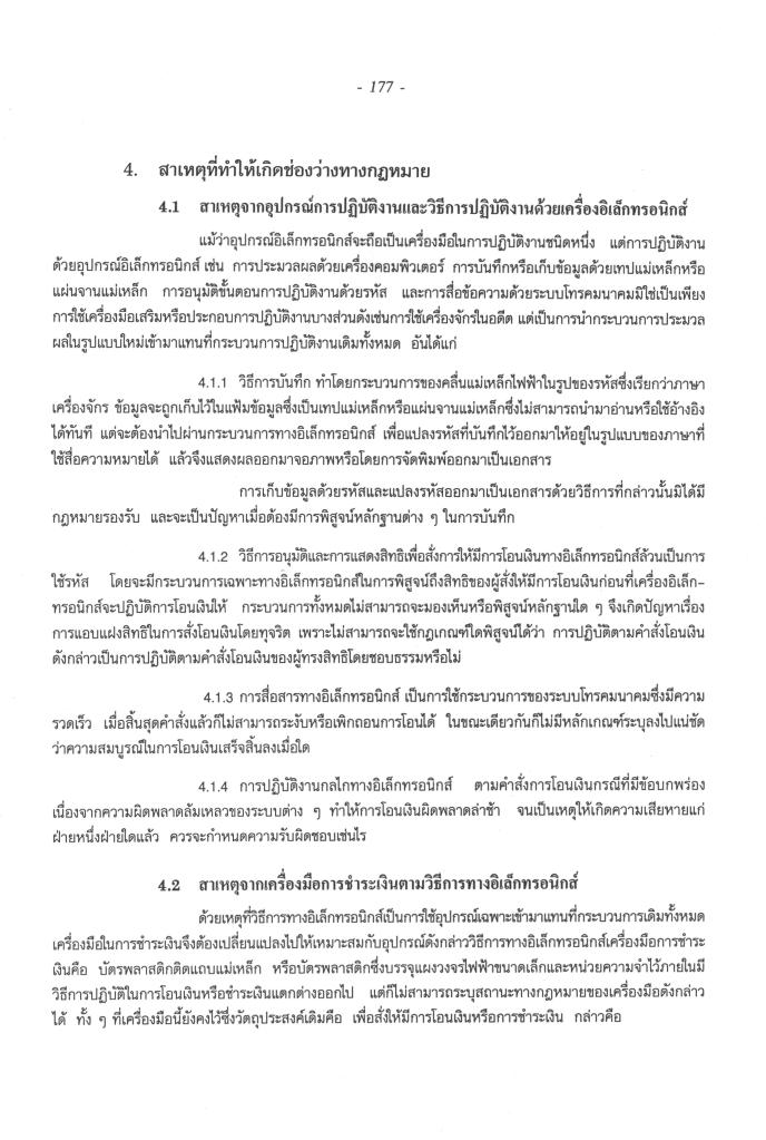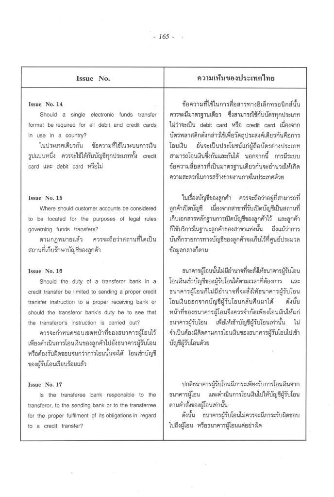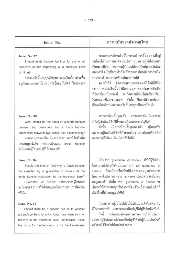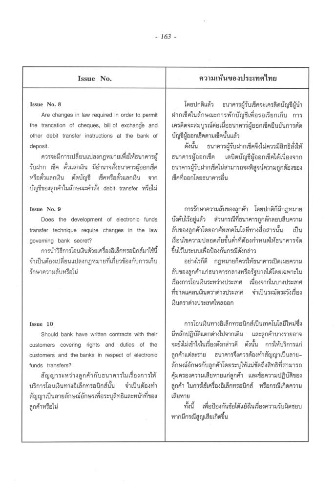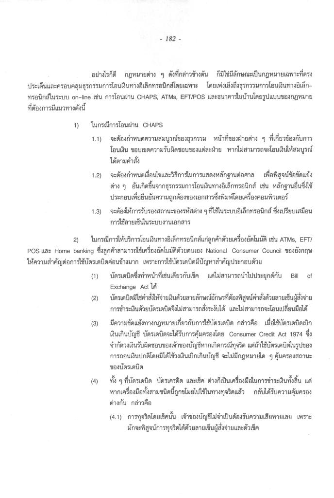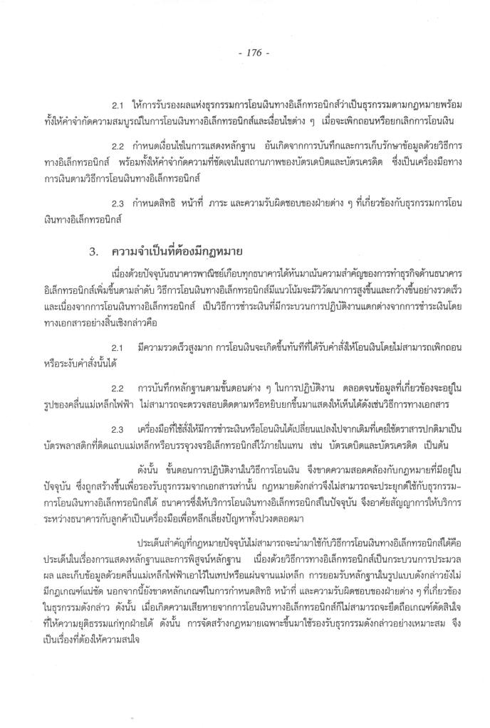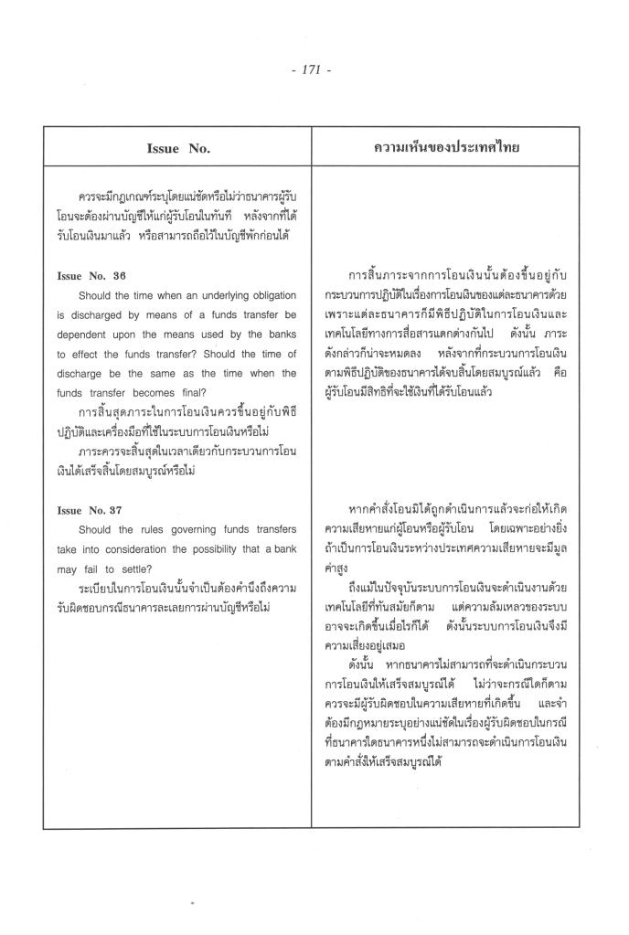 การดําเนินการของธนาคารแห่งประเทศไทยดังกล่าว เป็นการป้องกันปัญหาล่วงหน้าที่อาจเกิดขึ้นกับสถาบันการเงิน ดังรายละเอียดปรากฏในหนังสือชุดนี้แล้ว - จากการที่ผ่านมาผมมีโอกาสเป็นผู้แทนของไทยไปร่วมการประชุมที่องค์กรสหประชาชาติ (UN) ที่ New York ในปี 2532 เรื่อง Draft Model Law on International Credit Transfers ซึ่งเดิมใช้ชื่อว่า Model Rules on Electronic Funds Transfer การเปลี่ยนแปลงชื่อเรื่องดังกล่าวก็เพื่อให้ครอบคลุมร่างกฎหมายการโอนเงินทั้งทาง อิเล็กทรอนิกส์และการโอนเงินแบบธรรมดา (ถ้ามี) ได้ หนังสือเล่ม 4 นี้จึงมีภาคผนวกที่เกี่ยวข้องรวบรวมไว้ให้ท่านผู้อ่านได้อ่านในเรื่องนี้โดยสังเขป