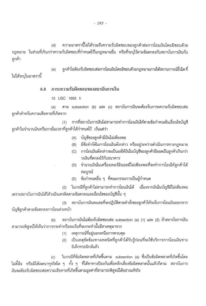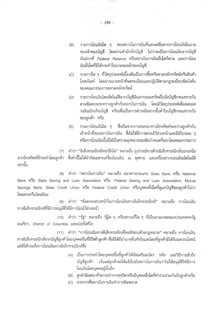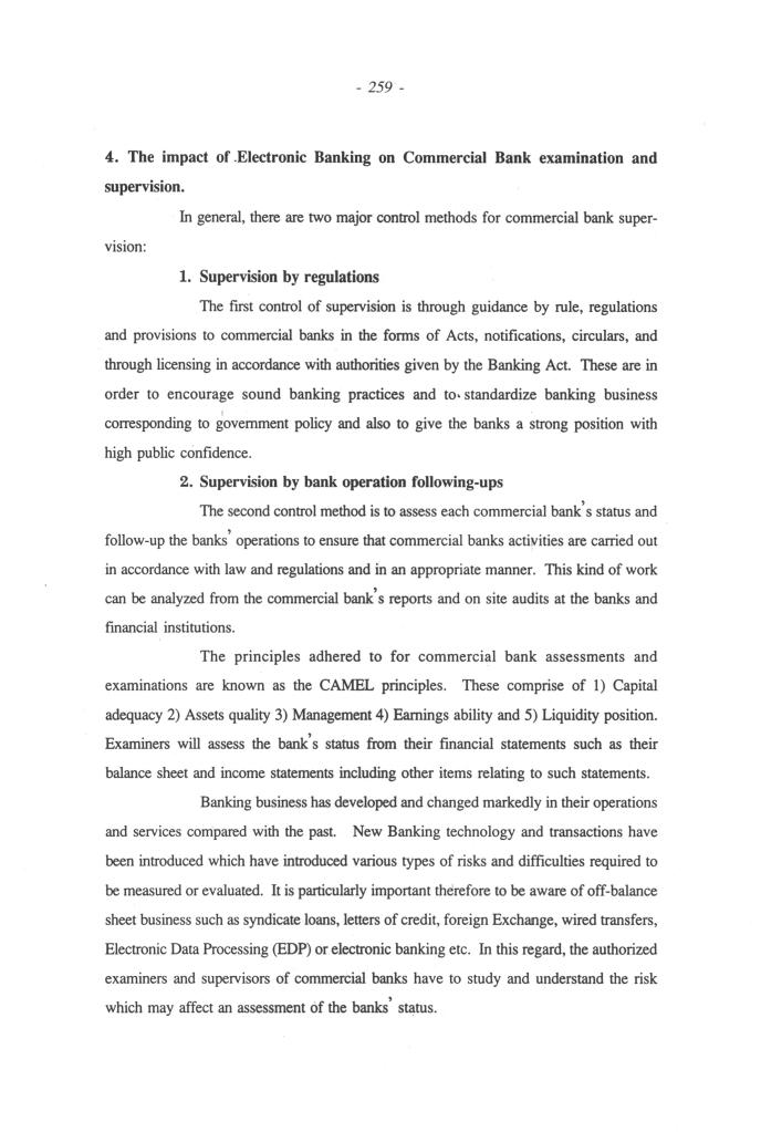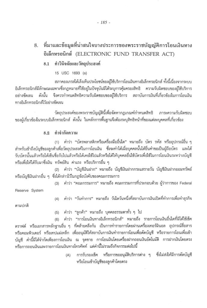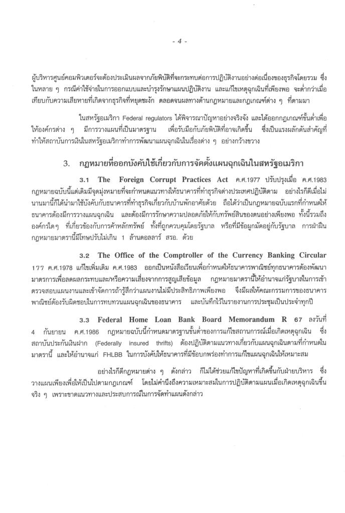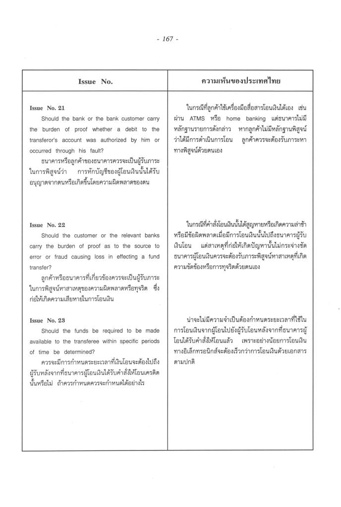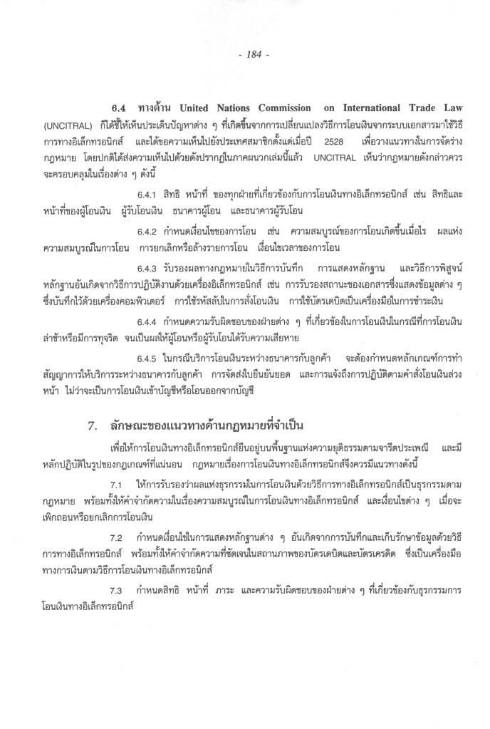 การดําเนินการของธนาคารแห่งประเทศไทยดังกล่าว เป็นการป้องกันปัญหาล่วงหน้าที่อาจเกิดขึ้นกับสถาบันการเงิน ดังรายละเอียดปรากฏในหนังสือชุดนี้แล้ว - จากการที่ผ่านมาผมมีโอกาสเป็นผู้แทนของไทยไปร่วมการประชุมที่องค์กรสหประชาชาติ (UN) ที่ New York ในปี 2532 เรื่อง Draft Model Law on International Credit Transfers ซึ่งเดิมใช้ชื่อว่า Model Rules on Electronic Funds Transfer การเปลี่ยนแปลงชื่อเรื่องดังกล่าวก็เพื่อให้ครอบคลุมร่างกฎหมายการโอนเงินทั้งทาง อิเล็กทรอนิกส์และการโอนเงินแบบธรรมดา (ถ้ามี) ได้ หนังสือเล่ม 4 นี้จึงมีภาคผนวกที่เกี่ยวข้องรวบรวมไว้ให้ท่านผู้อ่านได้อ่านในเรื่องนี้โดยสังเขป