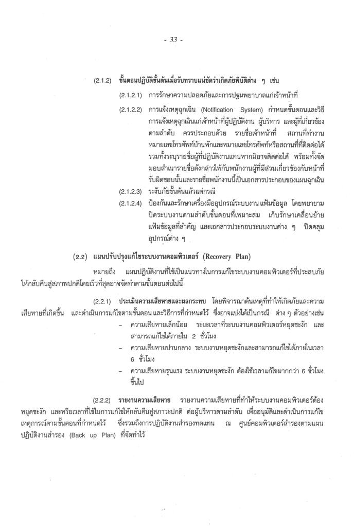 2.2 แผนปรับปรุงแก้ไขระบบงานคอมพิวเตอร์ (Recovery and Disaster Plan)