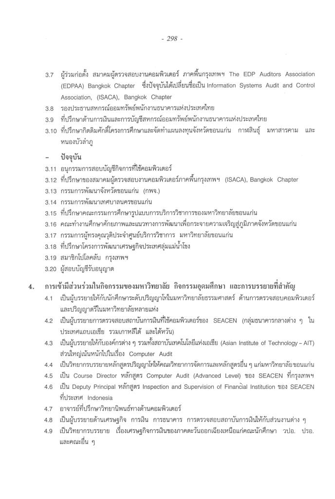 - ขอขอบคุณบรรดาเพื่อนร่วมงานในอดีตทุกท่าน โดยเฉพาะรุ่นบุกเบิกการตรวจสอบงานด้านคอมพิวเตอร์ ได้แก่ คุณสุขุม ตันตราจิณ คุณสรสิทธิ์ สุนทรเกศ คุณปรีชา ปรมาพจน์ คุณสมศักดิ์ มหินธิชัยชาญ คุณสุภักดิ์ ภูรยานนทชัย คุณวุฒิพงศ์ สมนึก คุณชาตรี วรวณิชชานันท์ และคุณพงศ์เทพ ชินพัฒน์ และเพื่อนร่วมงานรุ่นใหม่ ที่เข้ามาเสริมทีมงานในภายหลังที่ไม่อาจระบุชื่อได้ทั้งหมด ซึ่งมีส่วนสําคัญในการช่วยเรียบเรียงเอกสารประกอบการ บรรยายในอดีตในหลาย ๆ เรื่อง และทําให้งานตรวจสอบด้านคอมพิวเตอร์แพร่หลายมากขึ้นในปัจจุบัน ขอขอบคุณอีกครั้งสําหรับการมีส่วนร่วมใด ๆ ที่ผ่านมาในกิจกรรมเผยแพร่เอกสารการดําเนินงานการตรวจสอบสถาบันการเงิน ด้านคอมพิวเตอร์ ขอขอบคุณเพื่อนร่วมงานในหน่วยวิชาการ ธนาคารแห่งประเทศไทย สาขาภาคตะวันออกเฉียงเหนือในปัจจุบันที่ช่วยตรวจทานความถูกต้องในการพิมพ์เล่มนี้