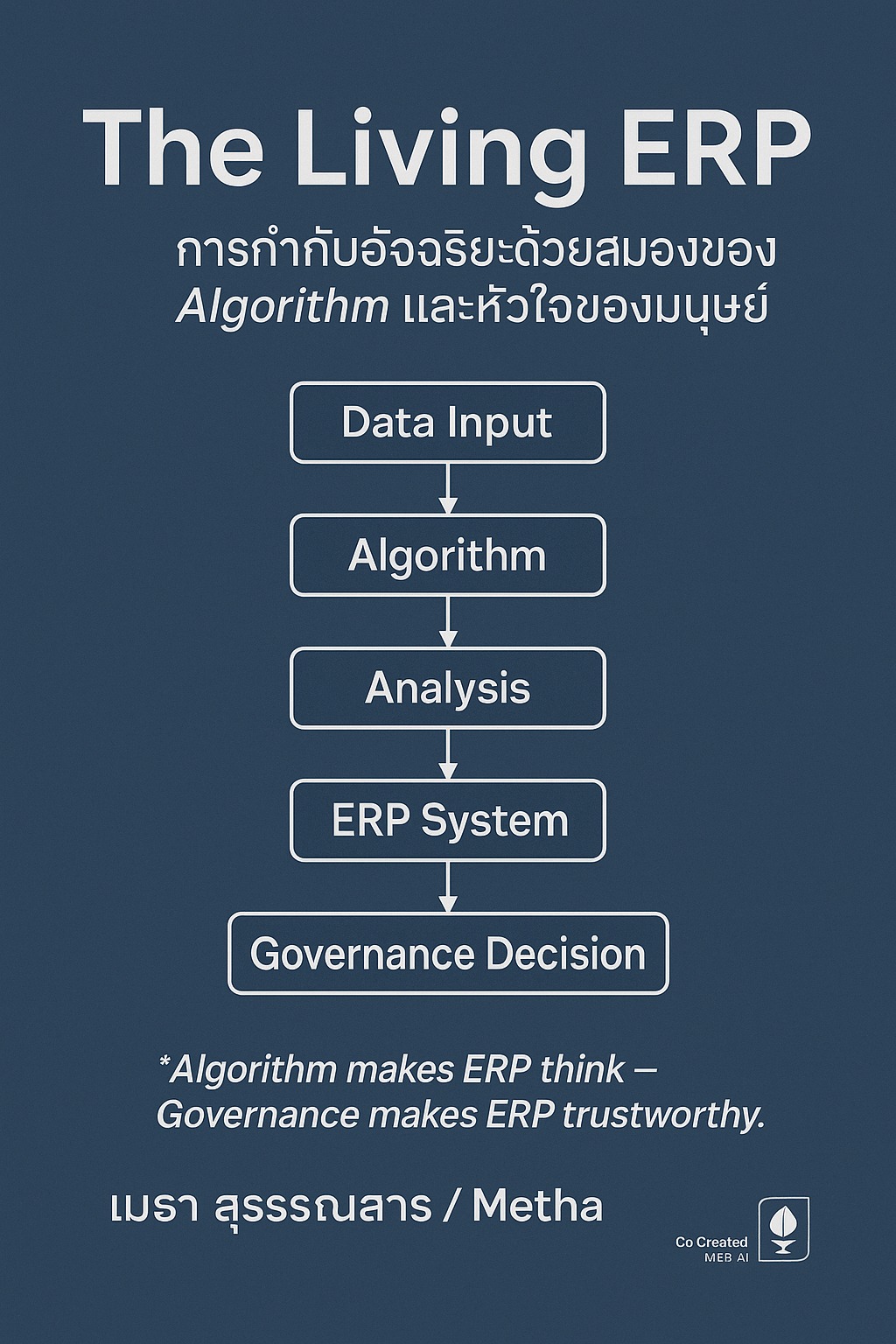 เราได้เห็นแล้วว่า ERP ไม่ใช่แค่ทางเลือก แต่เป็นรากฐานที่สำคัญในการสร้าง Data ที่มีคุณภาพ มีความเกี่ยวพันกัน และสร้าง Governance ที่ทุกคนทุกระดับต้องมีความเข้าใจที่ตรงกัน เพื่อหลีกเลี่ยงการแก้ปัญหาที่ปลายเหตุและมุ่งเน้นการสร้างคุณค่าเพิ่มให้องค์กร การทำให้องค์กรเป็นเหมือน ร่างกายมนุษย์ที่สมบูรณ์แบบ ด้วยการบูรณาการทุกฟังก์ชันเข้าด้วยกันผ่านระบบ ERP คือการเตรียมพร้อมที่สำคัญที่สุด แต่การมีข้อมูลที่เชื่อมโยงกันเพียงอย่างเดียวไม่พอ เราต้องมี ‘ตรรกะ’ ในการประมวลผลด้วย ข้อมูลใน ERP จะมีพลังอย่างแท้จริงเมื่อมันถูกขับเคลื่อนด้วย Algorithm ที่รัดกุม ซึ่งเป็นหัวใจสำคัญของ GRC ที่จะทำให้ข้อมูลมีความถูกต้องและสามารถนำไปสู่การบริหารความเสี่ยงได้อย่างแม่นยำ โปรดติดตาม ‘ตอนที่ 2: หัวใจของการคิด: GRC, Algorithm และความถูกต้องของ Data ใน ERP’ ซึ่งเราจะเจาะลึกว่า Algorithm คืออะไร และถูกนำมาใช้กำหนดตรรกะและกฎเกณฑ์ในการกำกับดูแลข้อมูลอย่างไร